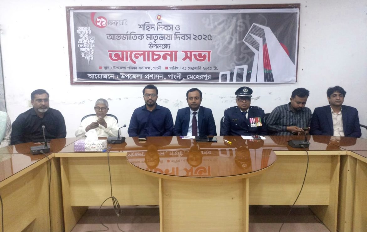 জাতীয় শহীদ দিবস ও আন্তর্জাতিক মাতৃভাষা দিবস উপলক্ষে মেহেরপুরের গাংনীতে উপজেলা প্রশাসনের উদ্যোগে এক আলোচনা সভা অনুষ্ঠিত হয়েছে।